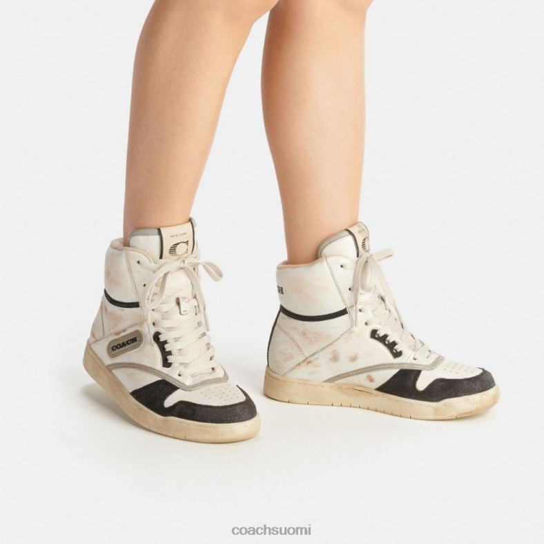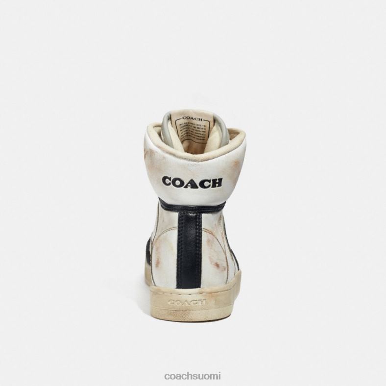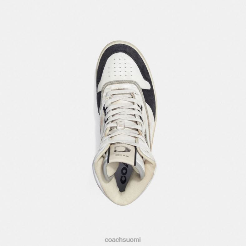 Nämä retrokenkien inspiroima korkeat lenkkarit on valmistettu yhdistelmästä sileää nahkaa ja samettista mokkanahkaa. Tarkoituksenmukaisesti viimeistelty viimeistely luo elävän ilmeen. Mukavuutta ja pitkää käyttöä varten suunniteltu urheilullinen tyyli on viimeistelty sivuilla olevalla nimellämme ja etureunassa olevalla allekirjoituksellamme perinteistä kosketusta varten.