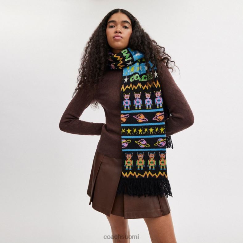 Tämä kirkas ja värikäs huivi, jossa on outo, ulkopuolinen kosminen aihe, lisää dynaamista ilmettä mihin tahansa ilmeeseen. pehmeä villatyyli on yksityiskohtainen nimemme ja herkän hapsujen kanssa.