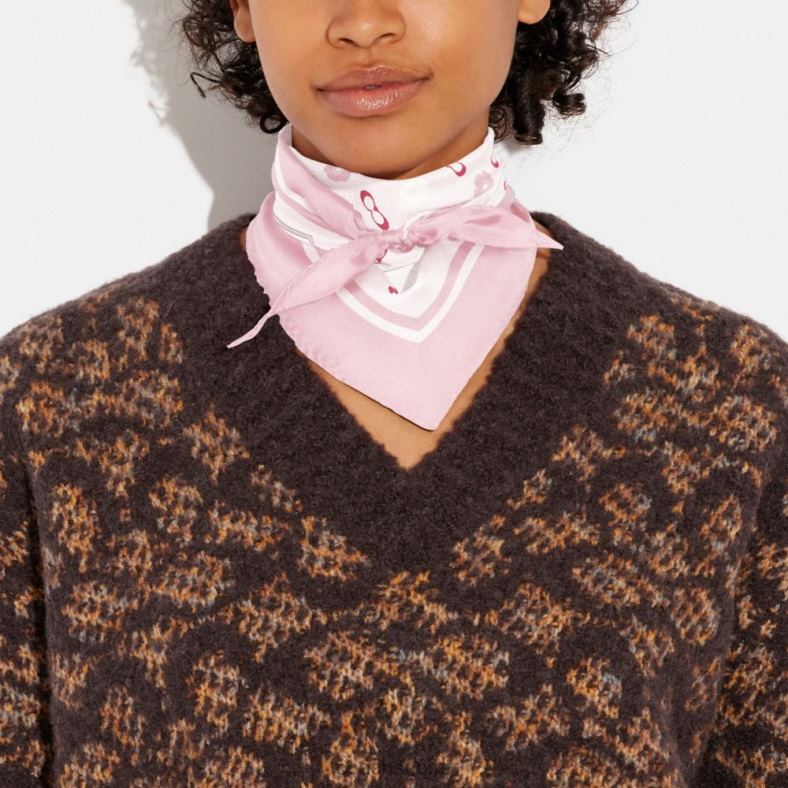 Coach naiset teeruusukuvioinen silkkitimanttihuivi kukka pinkki VF6B6609