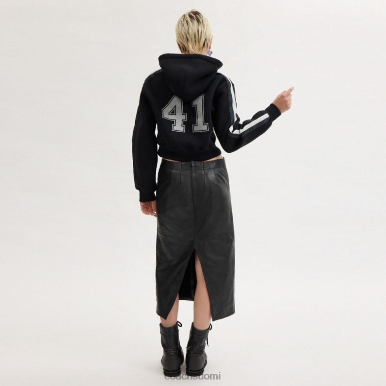 Tämä sileä suoramallinen maxihame on valmistettu kiillotetuista soljeistamme, ja se on valmistettu pehmeästä joustavasta nahasta. se on viimeistelty liukutaskuilla ja takana olevalla halkiolla liikkumisen helpottamiseksi.