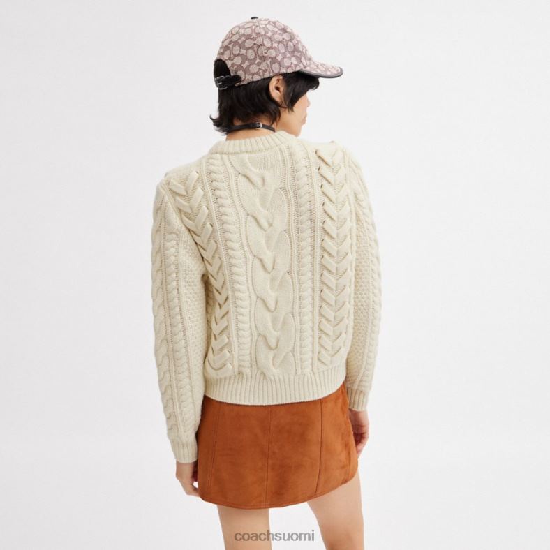 Tämä neulepusero on punottuilla kaapelineuloksilla, ja se on valmistettu pehmeästä, hengittävästä villan ja kashmirin sekoituksesta. Klassisen istuvuuden pyöreä kaula-aukko on viimeistelty mukavalla uurretulla reunuksella.