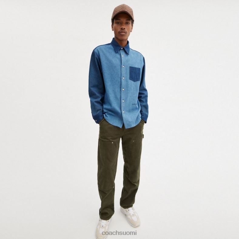 Perinteiseen työvaatetyyliin perustuva klassinen puuvillainen denimpaita sopii kaiken kanssa. Colorblock-design on viimeistelty terävällä kauluksella ja rintataskulla.